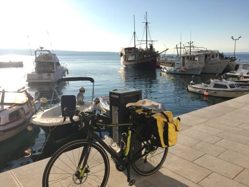 La prima vera pausa l’ho fatta a Fiume, bellissima località sul mare croato. Avrei potuto fermarmi, ma la media dei chilometri che mi sono imposto e fissato in testa, per arrivare con qualche giorno d’anticipo e riposarmi per la maratona, non me lo permettono. Sono dunque ripartito per arrivare in un paesino con un piccolo porticciolo: Selce.