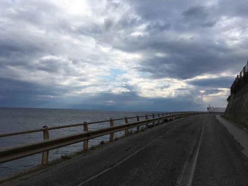 Come al solito, lo so che sono ripetitivo, il ginocchio sinistro si fa sentire. Devo cercare in tutti modi di sforzarlo il meno possibile. L’asfalto è bagnato perché ha piovuto poco fa e tutto intorno a me il cielo non promette niente di buono.